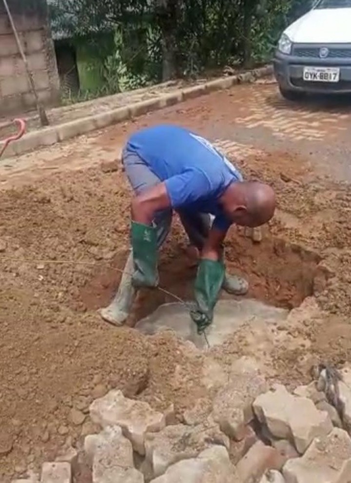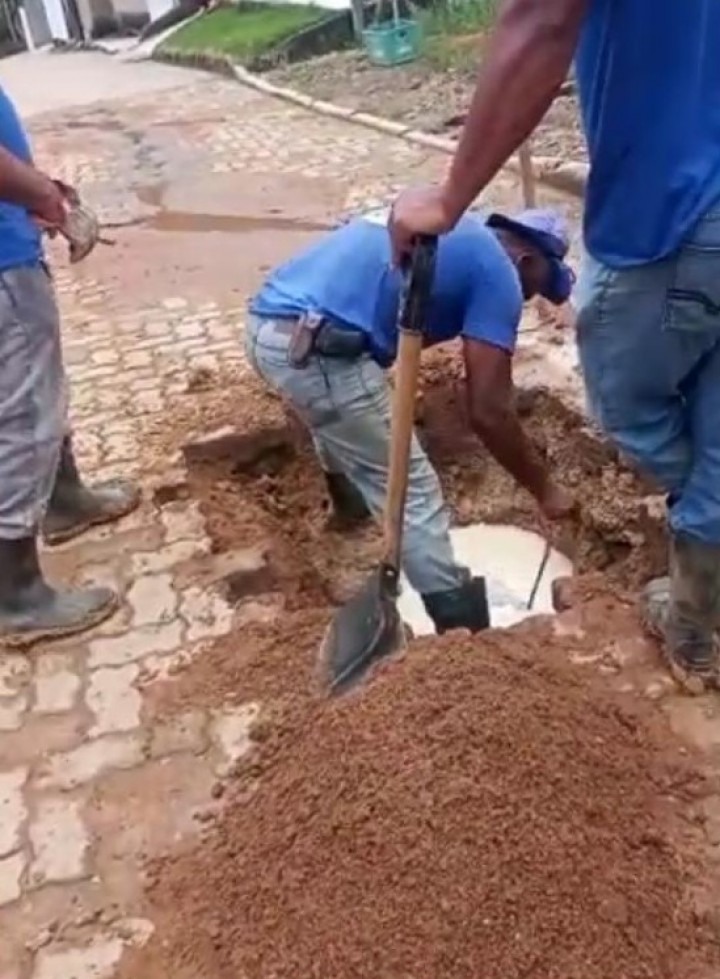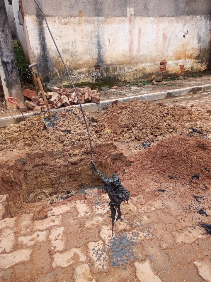 SAAE em ação realiza serviço de desobstrução de rede de esgoto em rua de São Pedro de Rates dia 04/02/2022 e contou com a participação de sua equipe Cristiano (Mofó), Ricardo, Claúdio e Leandro (Diguin)