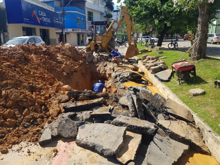 EQUIPE DO SAAE REALIZA SERVIÇO DE RECUPERAÇÃO DA REDE MESTRE DE ÁGUA, QUE SE ROMPEU NA AV. JOSÉ ALEXANDRE.