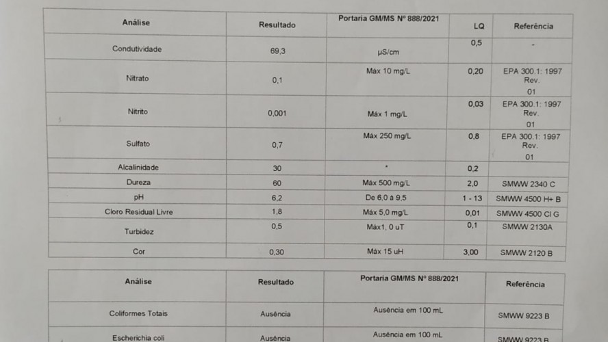 Noticia ETA SÃO PEDRO DE RATES: ÁGUA BRUTA E ÁGUA TRATADA PARA DISTRIBUIÇÃO Relatório de Ensaio Análises Físico-Químicas e Microbiológicas da Eta - São Pedro de Rates. Data: 18/11/2021 há 3 meses • SAAE em Ação 2021