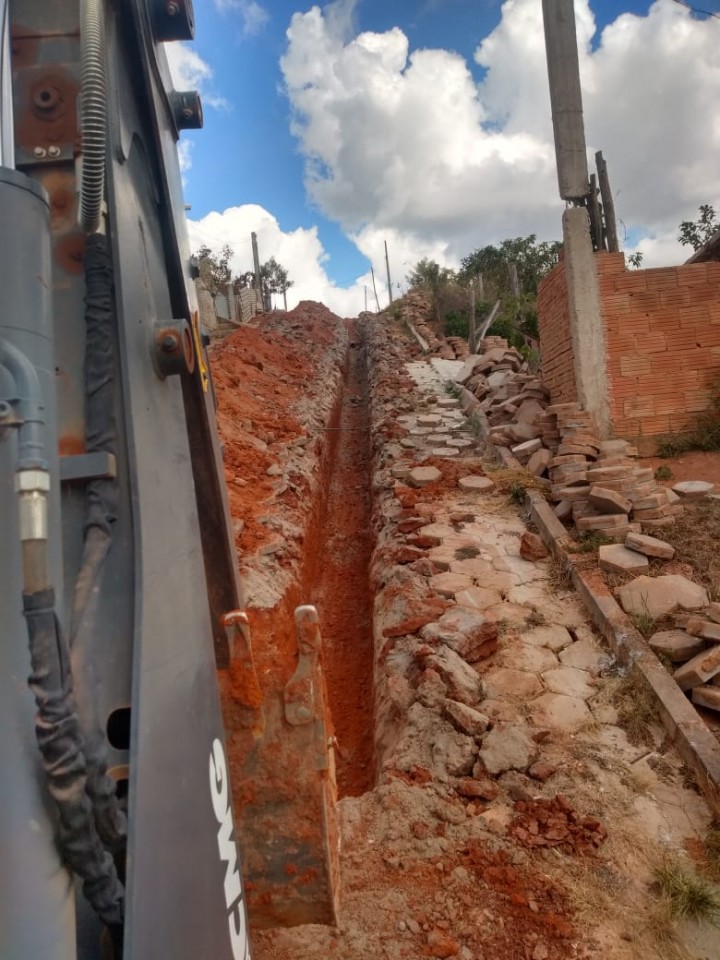 Obra referente a ampliação e construção de 454 metros de rede em pvc de 32mm (adução de água tratada), 689 metros de rede em pvc de 25mm (distribuição de água tratada) e 1016 metros de rede coletora efluente final do esgoto sanitário em pvc 150mm.